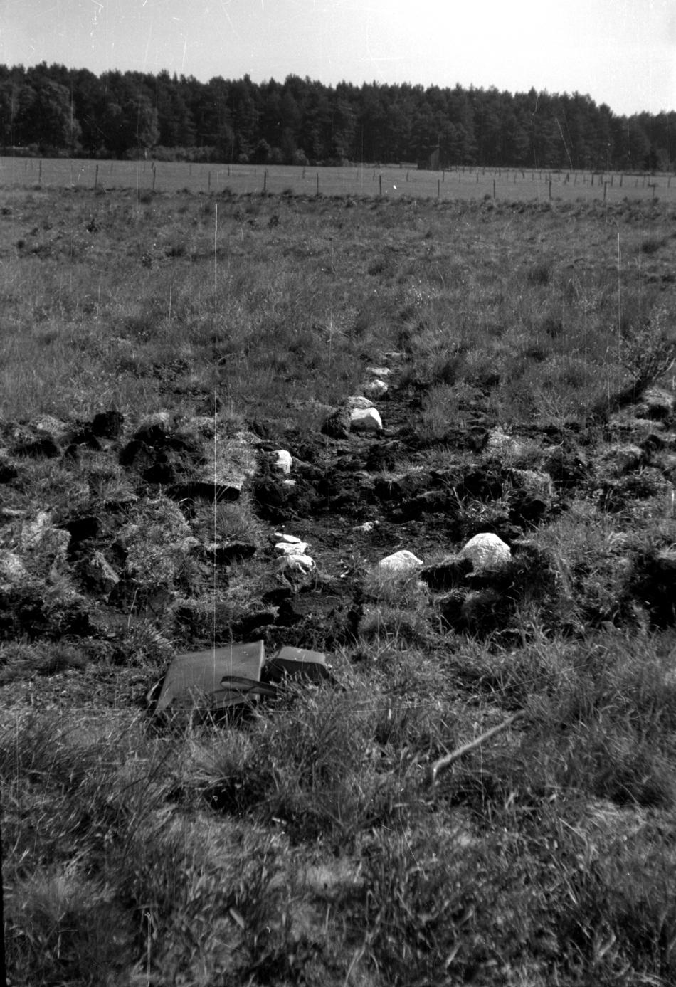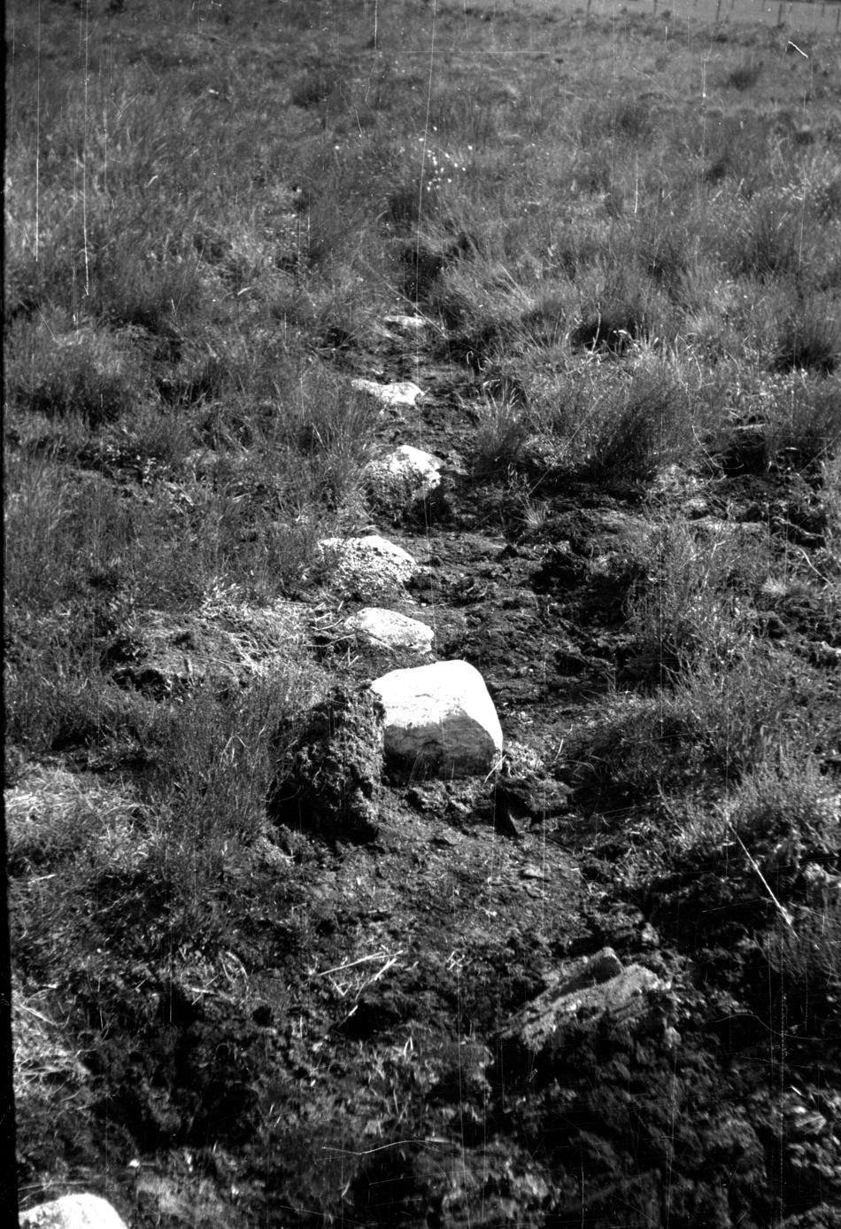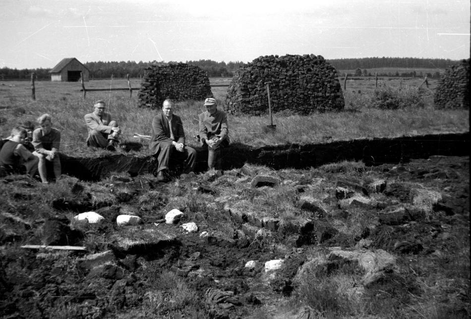 diggers and two photos of stones found in the peat that he may have thought to be possible