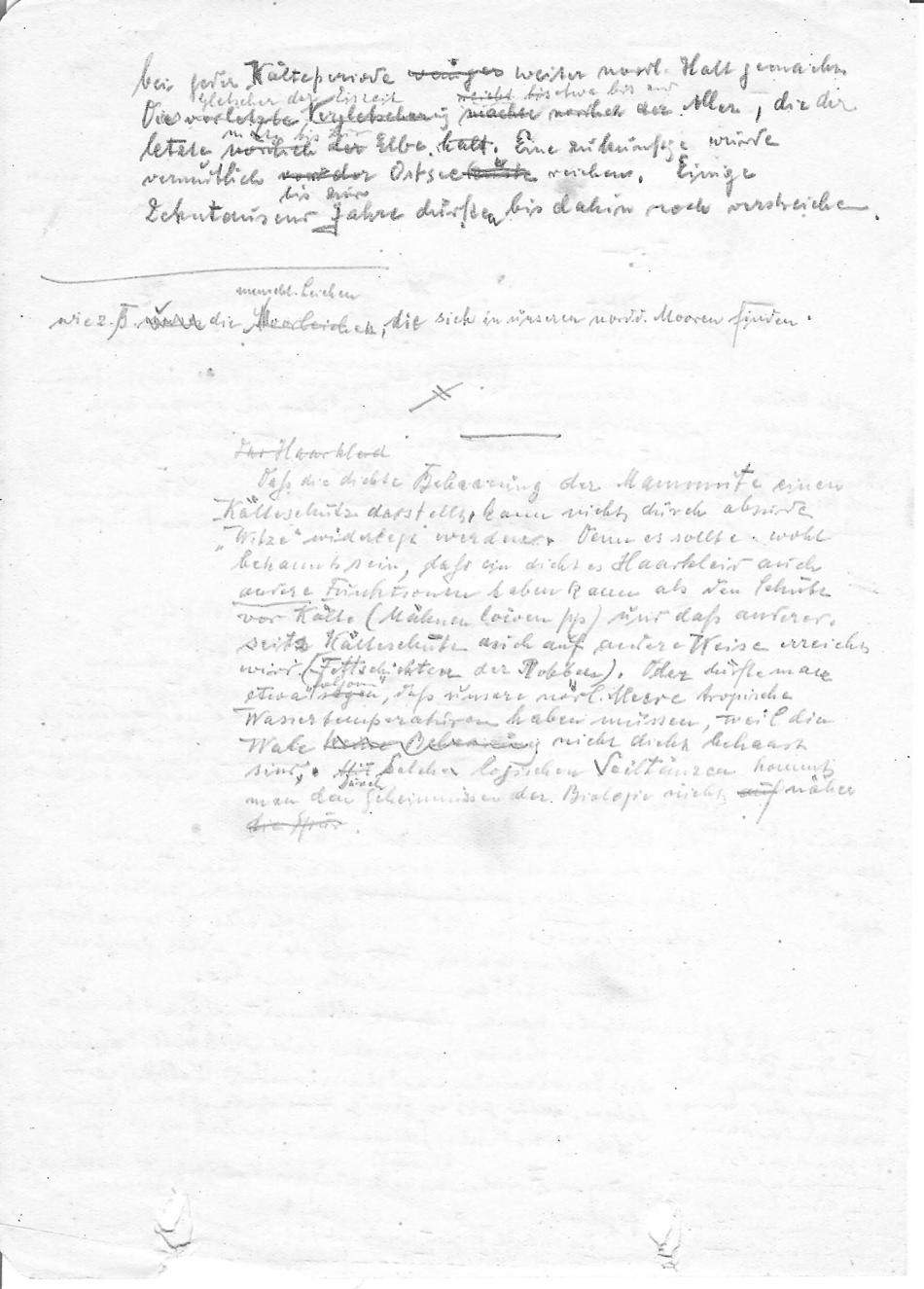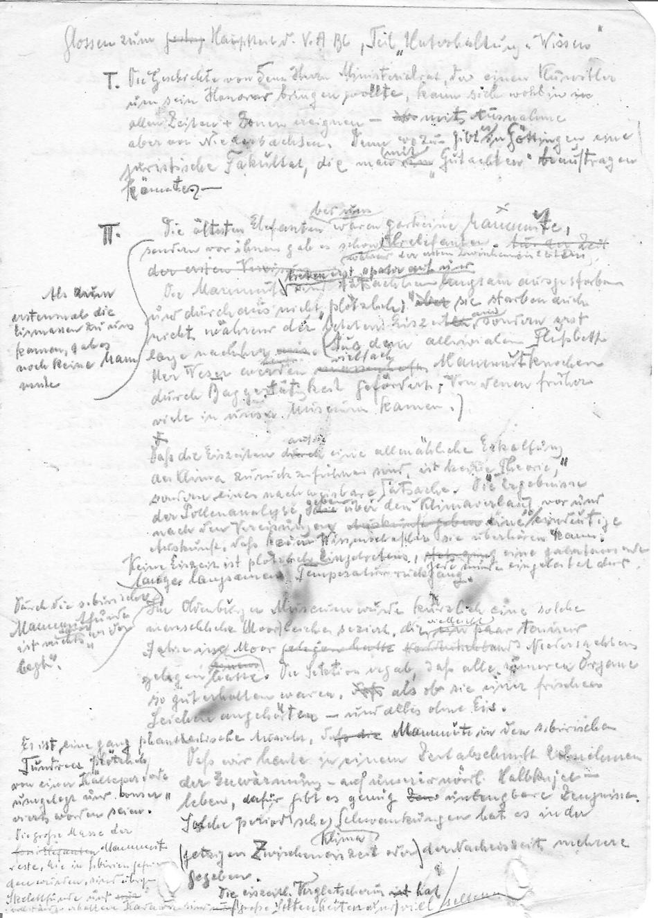 Hand written notes on the ice ages, elephants, etc, related to the