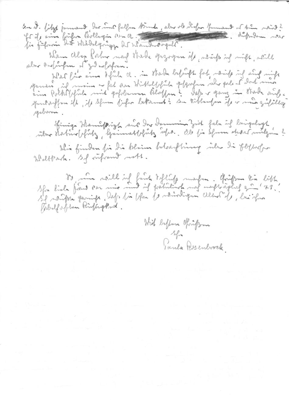A three-page hand-written letter from Paula Rosenbrock, apparently accompanying