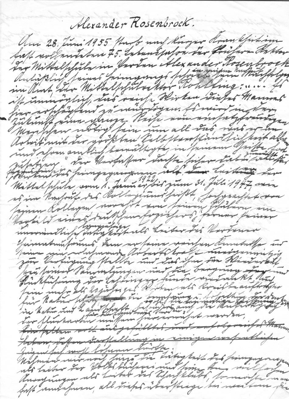 AR-16 - Hand written notes on Alexander Rosenbrock's life by an unknown author