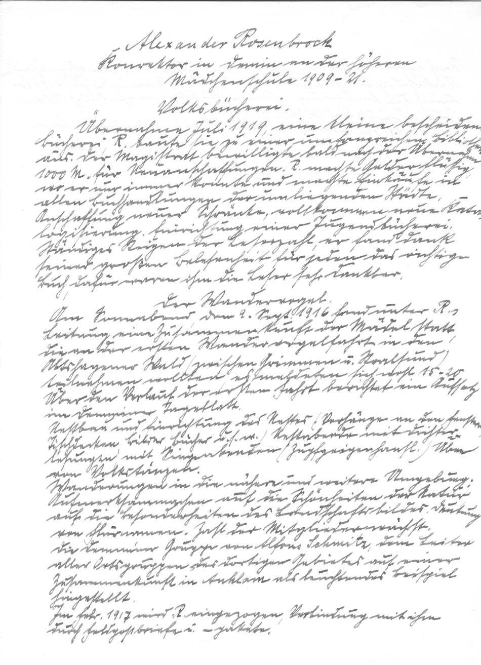 Two pages of hand-written notes on Alexander Rosenbrock's role in founding