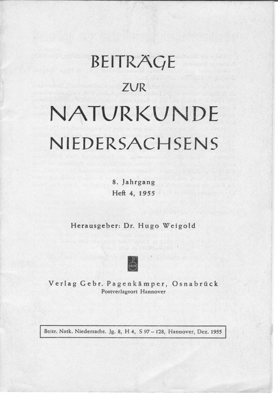 Naturkunde Niedersachsens (Contributions to Lower Saxony Natural History).