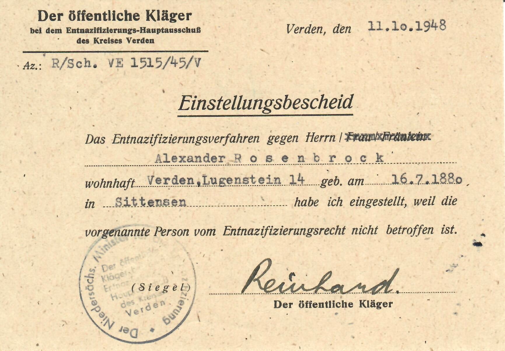 AR-45 - Notice of Waived Denazification